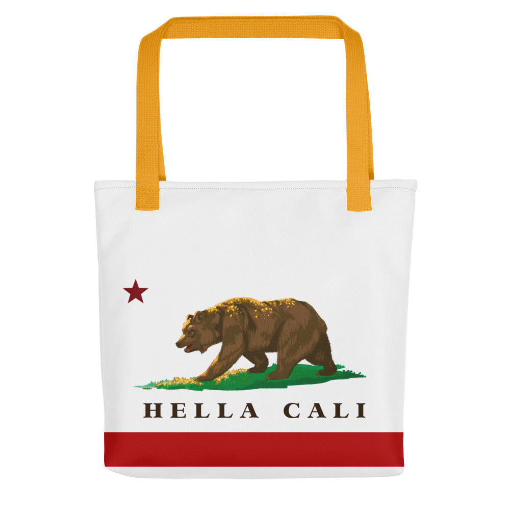 A spacious tote bag big enough to carry all your ish. Has the Hella Cali flag design.
