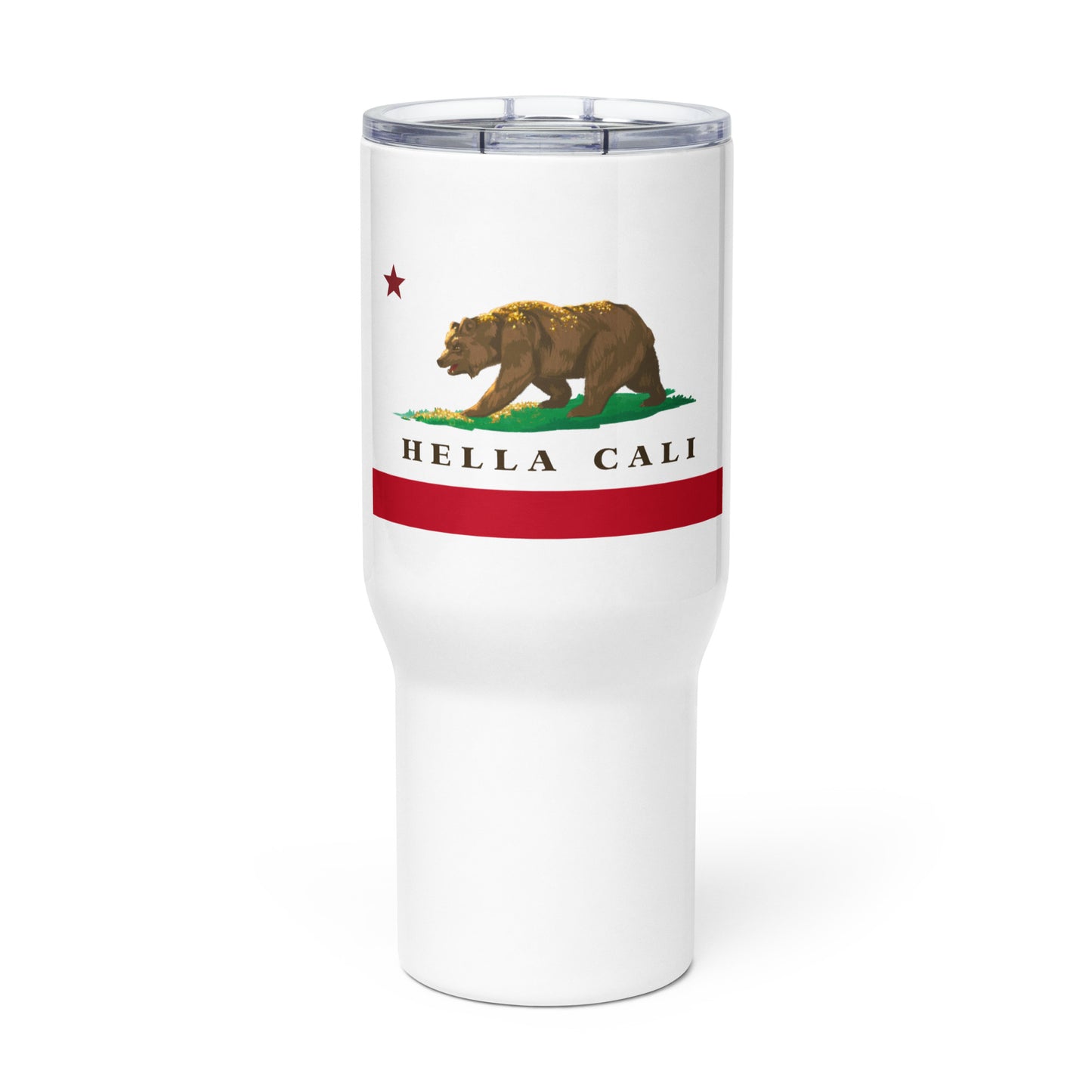 Sip in hella style with this Hella Cali travel mug. It fits into most car cup holders and has a spill-proof plastic lid. Commute to work or go on new adventures—this travel mug will keep your beverage safe and at just the right temperature.