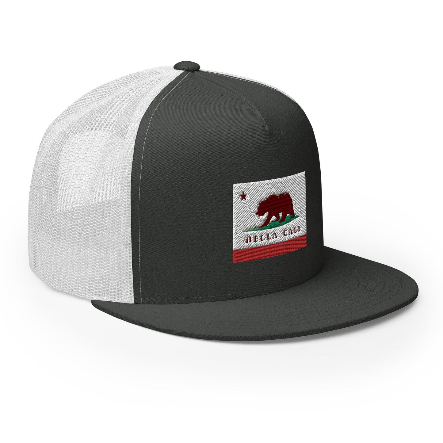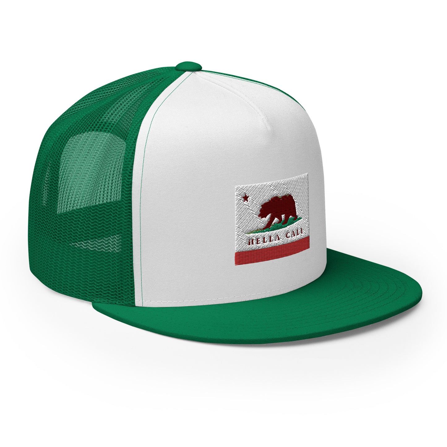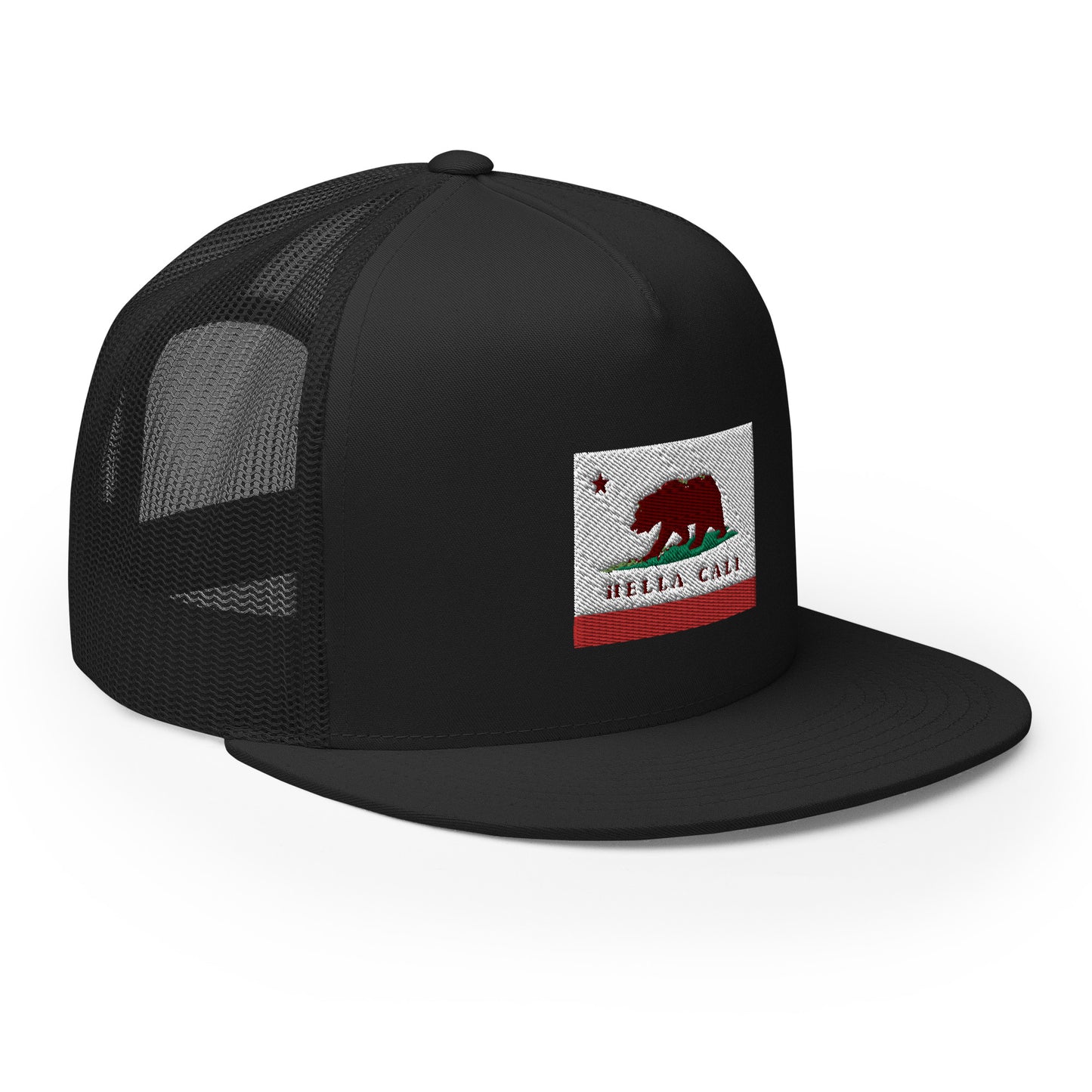 Classic trucker cap style with Hella Cali flag design.