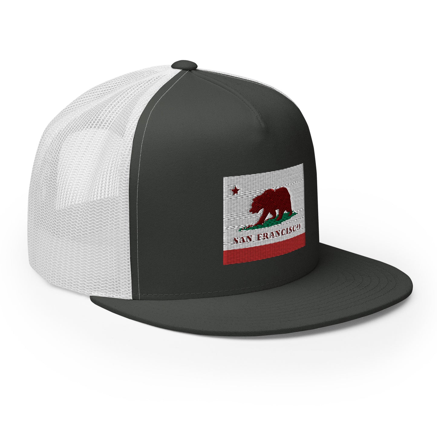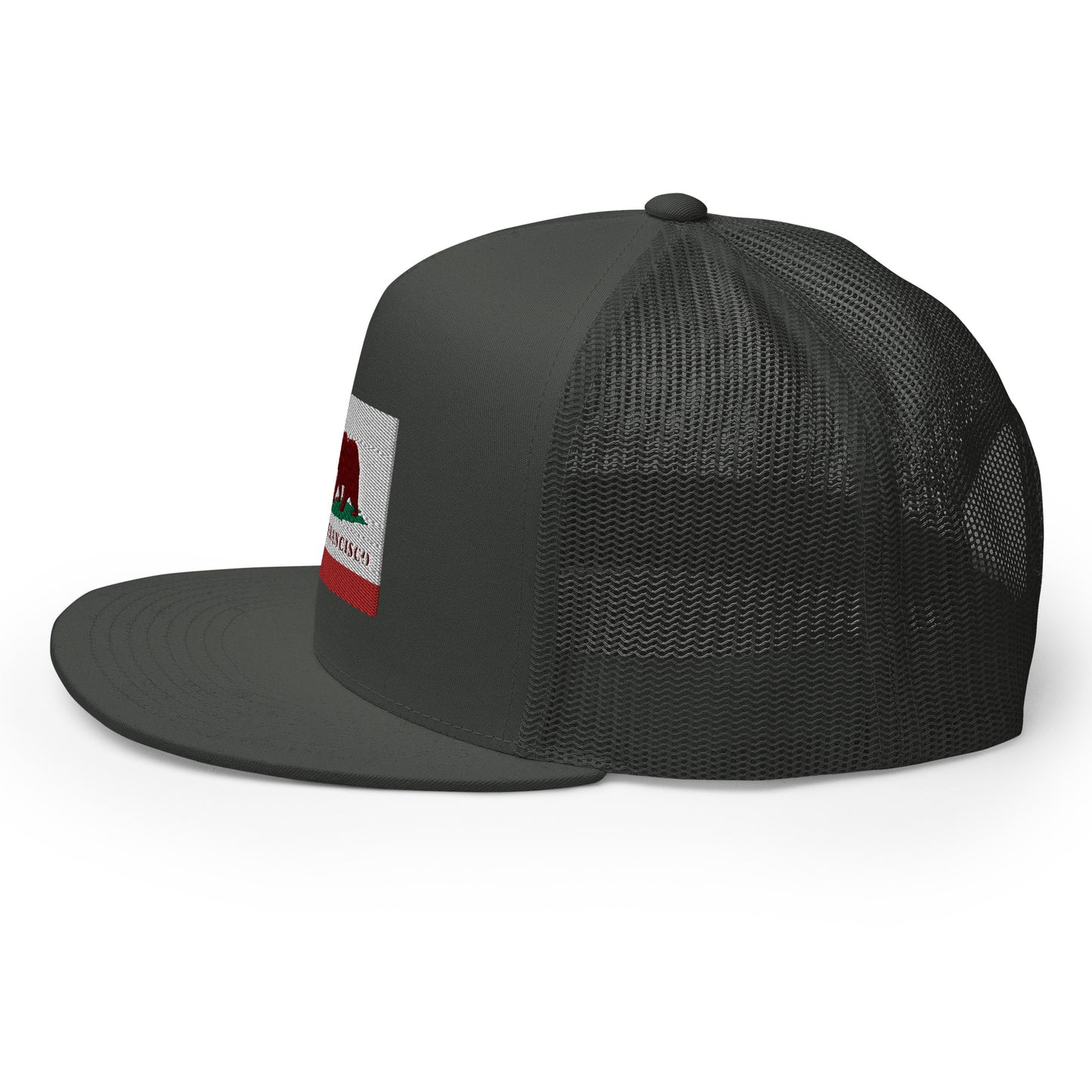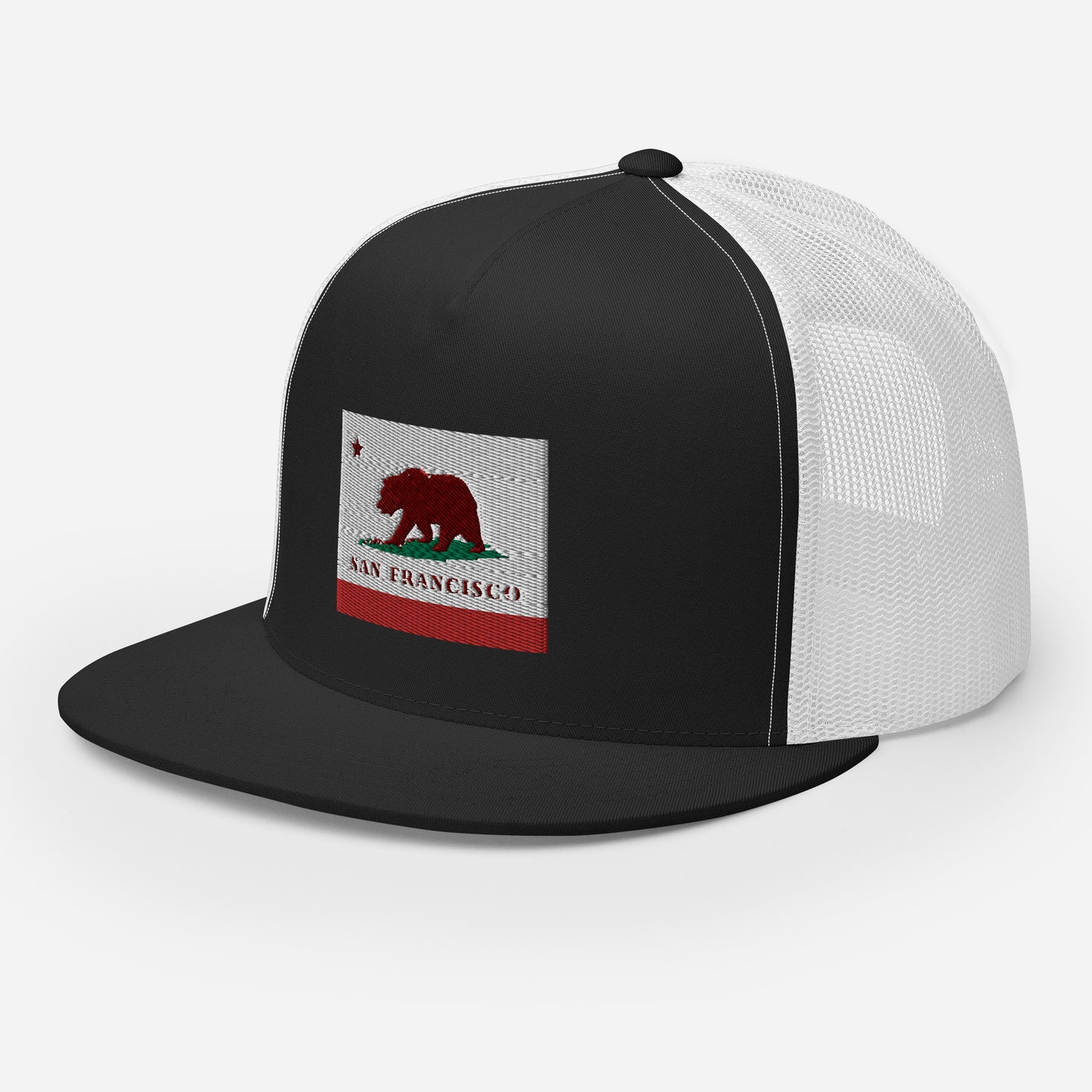 Classic San Francisco CA Flag trucker cap style with a cool fabric blend.