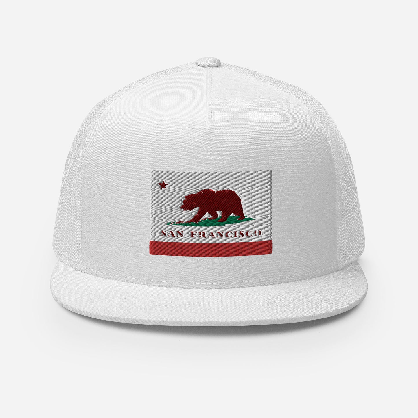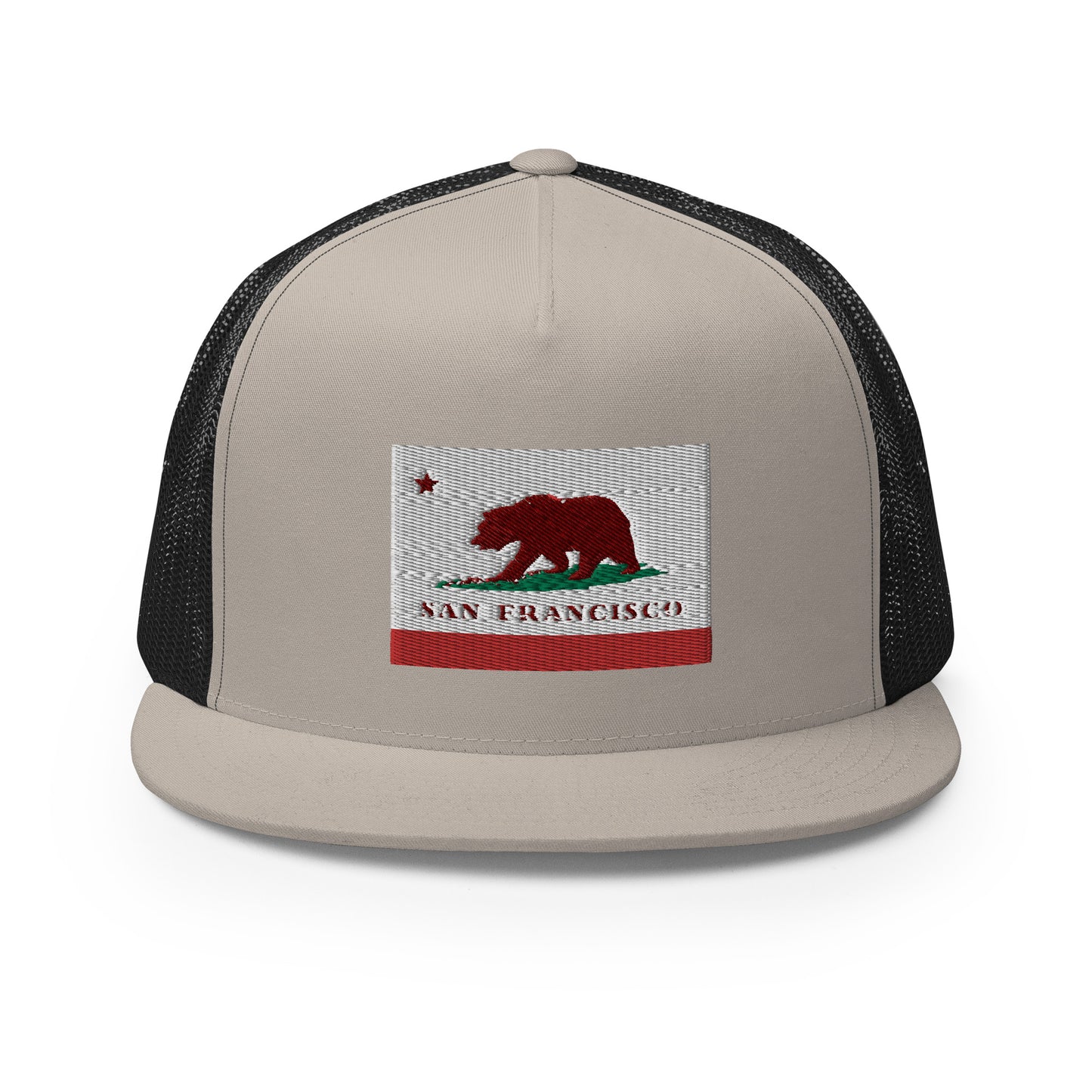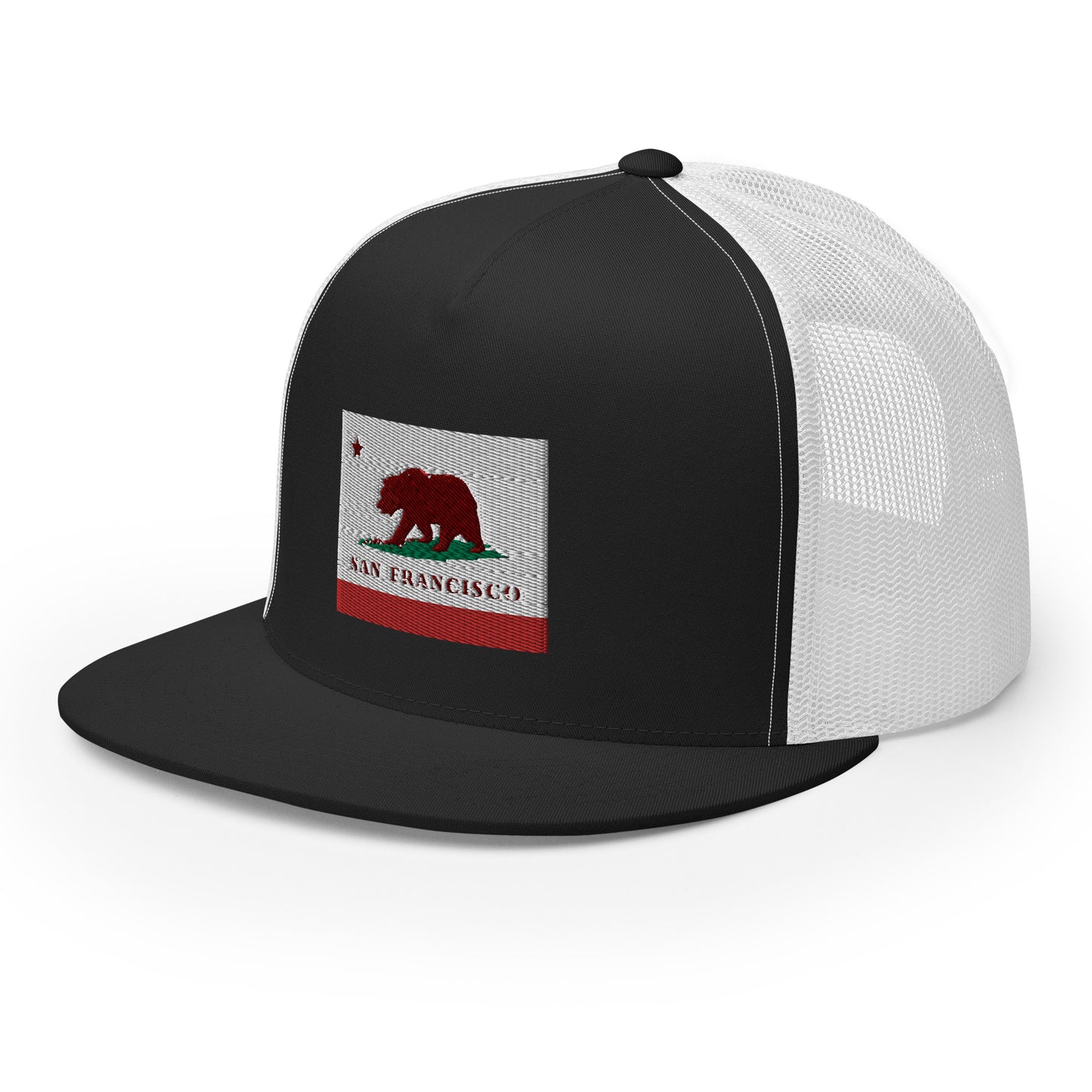 Classic San Francisco CA Flag trucker cap style with a cool fabric blend.